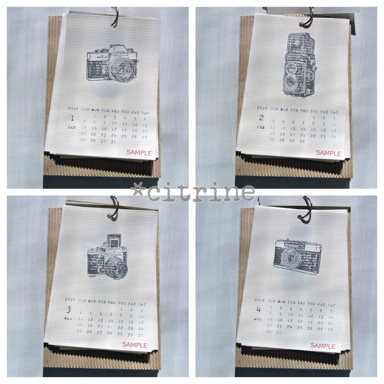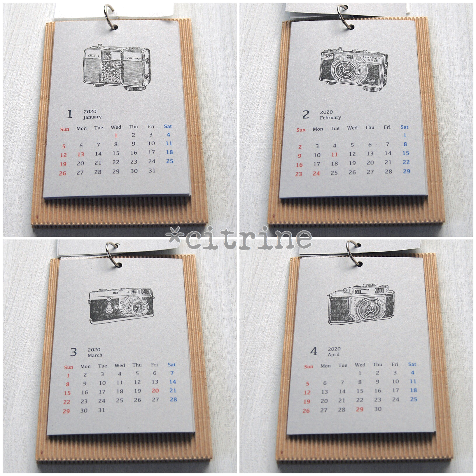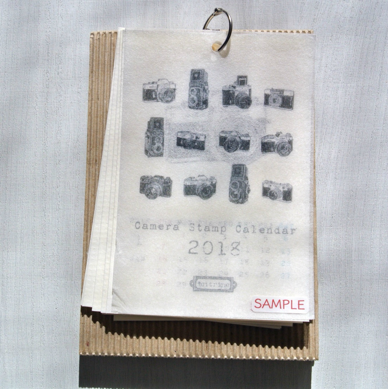 ・ハガキサイズ、片ダンボール紙の台紙・リング付き (台紙無しのリフィルタイプはネット通販でのみ販売) ・毎年末頃に期間・部数限定で販売 ※本体のカメラ部分は油性顔料インクで捺していますが、表紙や日付等の印刷部分は家庭用インクジェットプリンターで印刷しているので耐水性がありません。 画像↓クリック(タップ)で複数枚表示されます。
