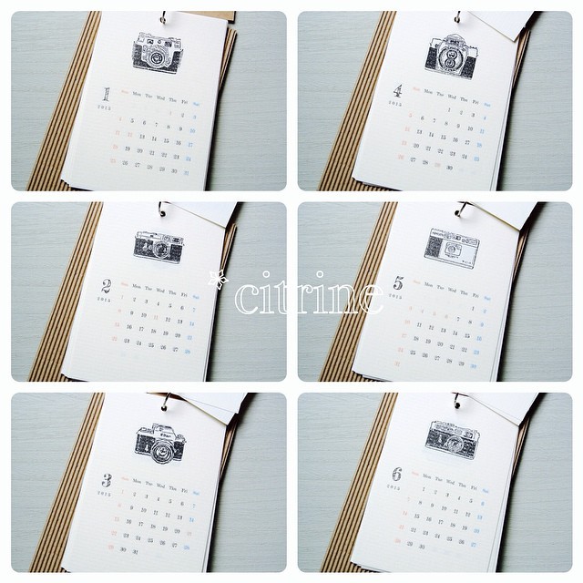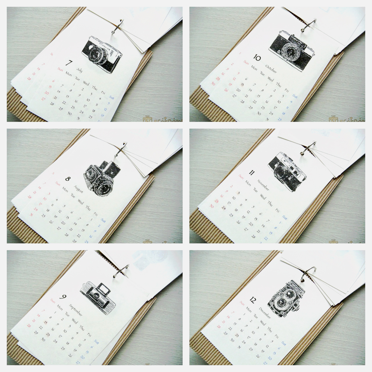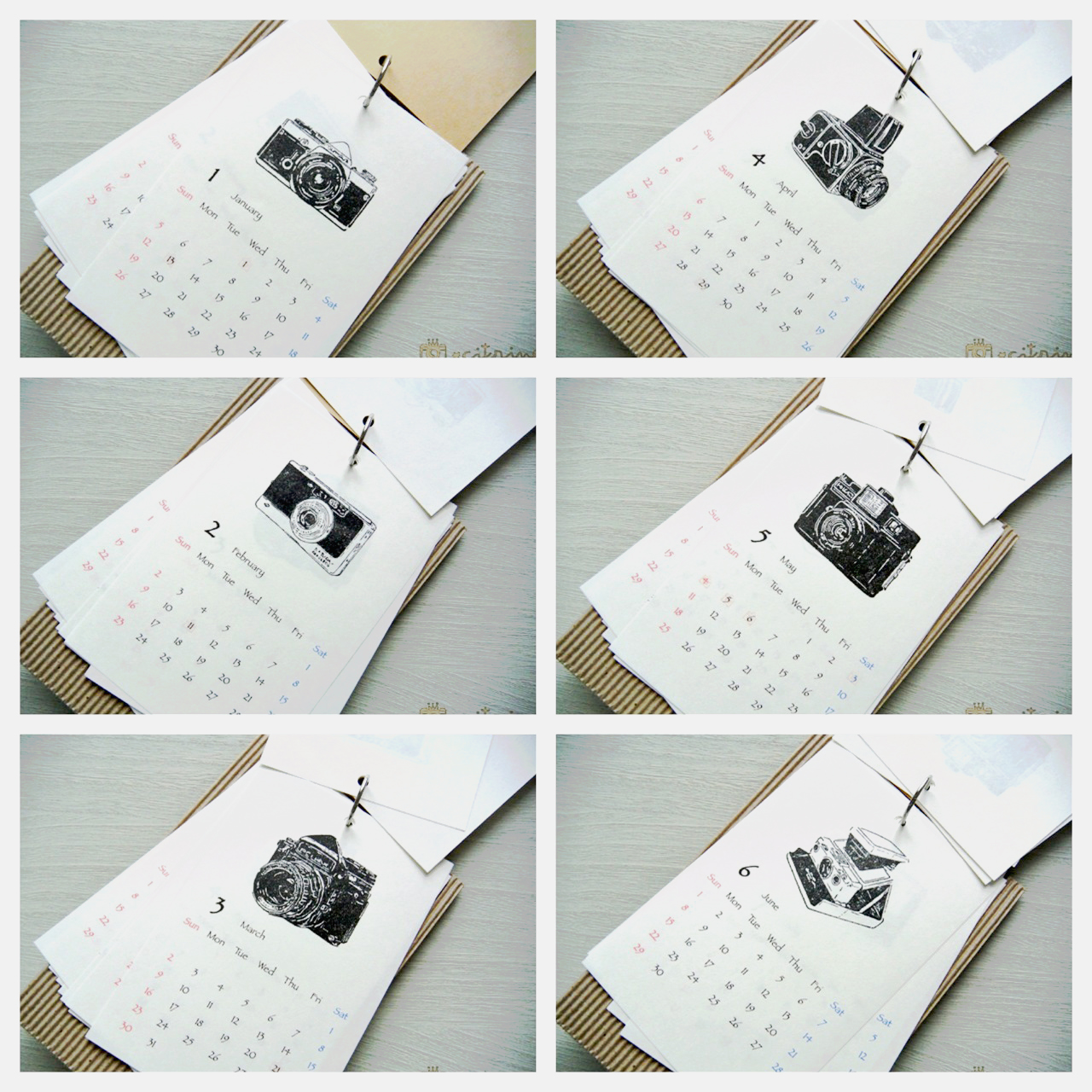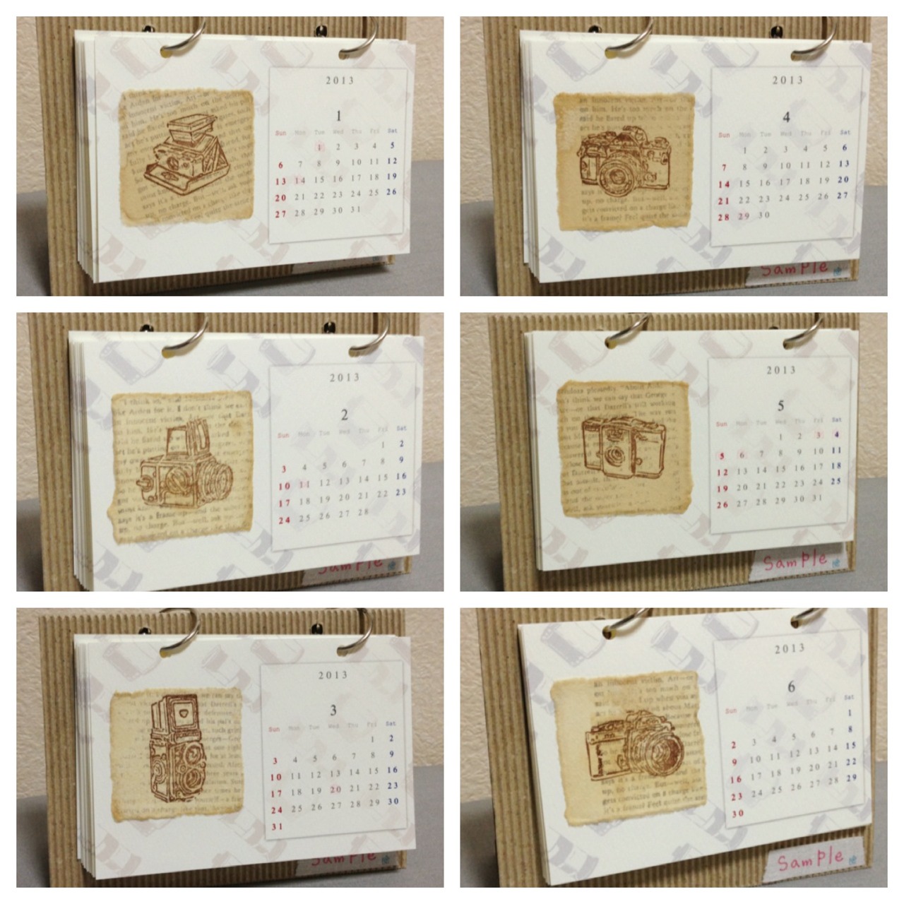 ・ハガキサイズ、片ダンボール紙の台紙・リング付き (台紙無しのリフィルタイプはネット通販でのみ販売) ・毎年末頃に期間・部数限定で販売 ※本体のカメラ部分は油性顔料インクで捺していますが、表紙や日付等の印刷部分は家庭用インクジェットプリンターで印刷しているので耐水性がありません。 画像↓クリック(タップ)で複数枚表示されます。