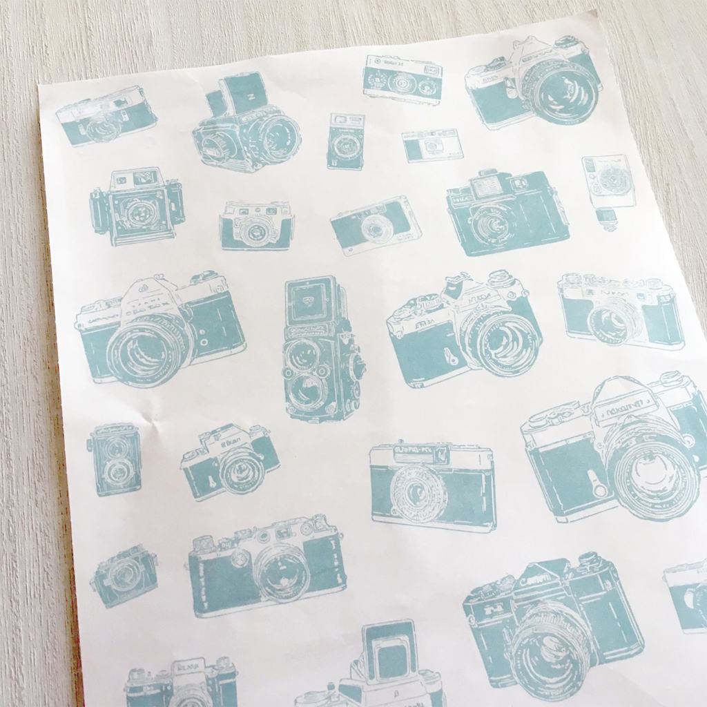 デザインに使用しているカメラは全て手彫りのスタンプ印影より。